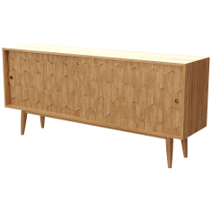 With a structure and interiors crafted entirely from 100% solid wood, Scarpa is a rectangular sideboard that merges functionality with artistry. Its clean, linear form is elevated by a unique design that offers two spacious drawers and four well-proportioned compartments, providing a generous and practical storage solution for a wide range of objects, whether it's dinnerware, books, electronics, or personal treasures.